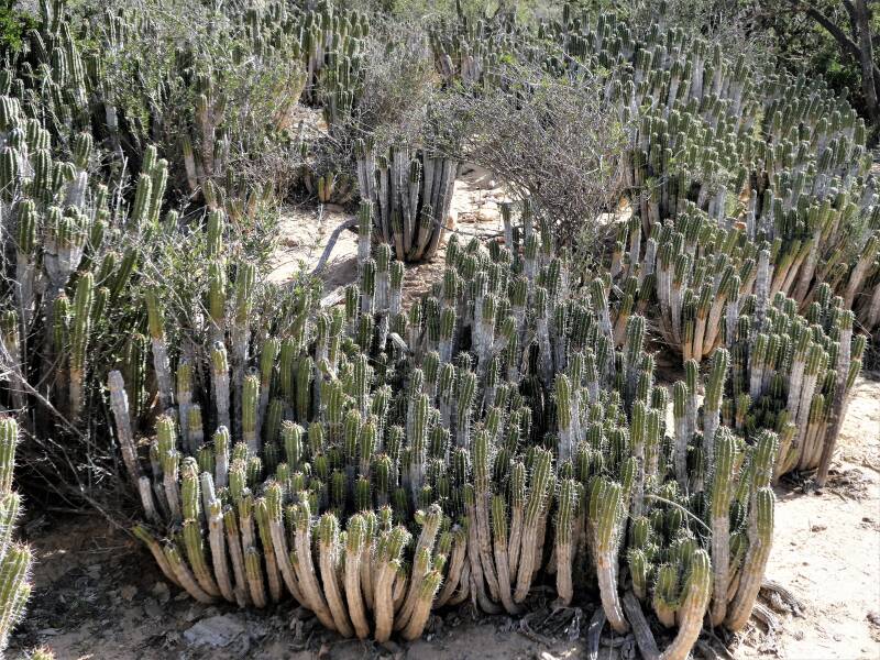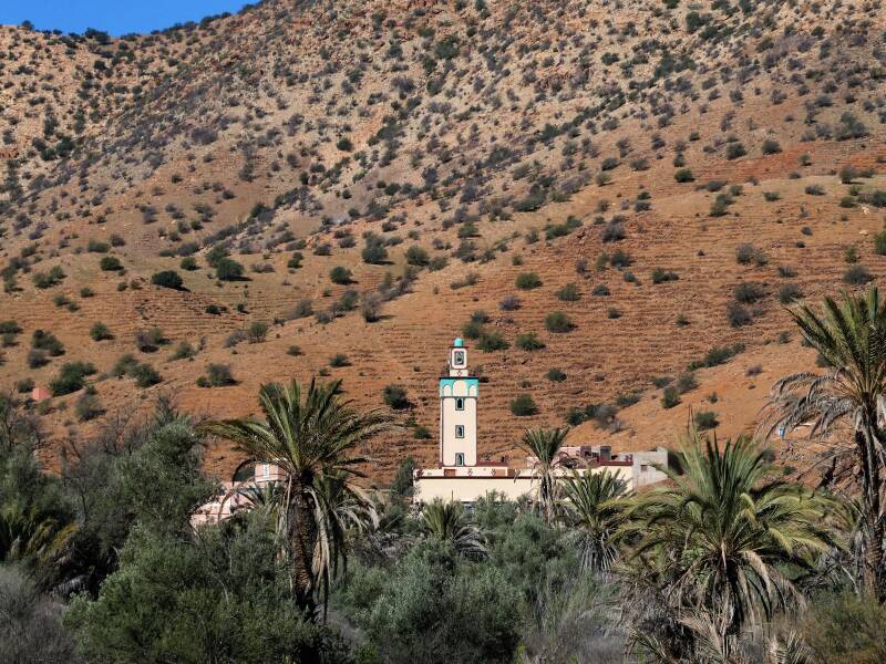 Vanochtend nemen we opnieuw afscheid, nu van Gerrie en Annie. Ook zij gaan langzaam maar zeker naar het noorden. De afscheidsreceptie, gisteren aan het einde van de dag, was dus onbedoeld ook voor hen. Wij gaan een wandeling maken, een eind achter de camping langs. Langs de bergkam en de droge rivierbedding. Een route die we vanaf nu de cactuswandeling gaan noemen. Fraaie struiken waar je overigens niet met je vingers aan moet komen. We komen een verdwaalde dromedaris tegen en her en der zitten Marokkaanse families te picknicken, een geliefde bezigheid op de zondag hier.