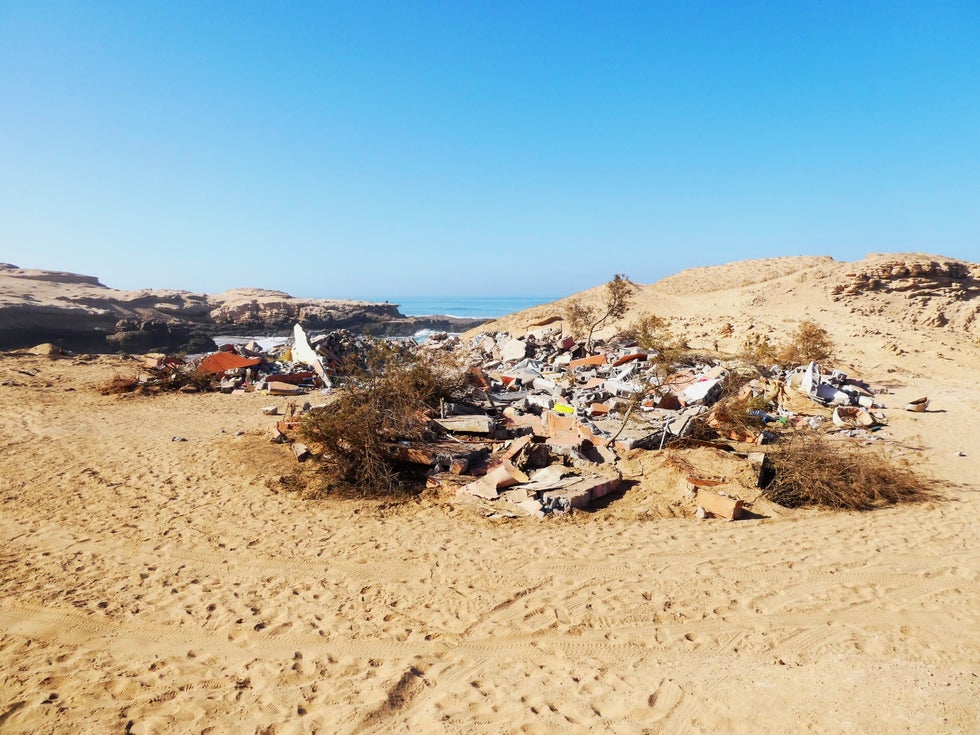 Gisteren hebben we een wandeling over het zandstrand gemaakt, vandaag dus over de rotsen de andere kant op. En dat viel niet mee. Voorgaande jaren liepen er allerlei min of meer verharde paadjes langs de kust, nu is dat bijna enkel mul zand. Het lijkt er op dat alles kapotgereden is. Al snel wordt duidelijk hoe dat komt. Langs die rotskust waren her en der bouwwerken te vinden van vissers. In alle varianten: van prachtige bouwwerken tot simpele onderkomens van materiaal wat de zee teruggeeft. En al die bouwwerken zijn veranderd in ruïnes. Met zwaar materieel in elkaar gestampt. Ook aan het einde van het wandelstrand zaten een aantal "grotwoningen". Daar, even voorbij het gehucht Sidi R'bat, schijnt hetzelfde gebeurt te zijn. De bewoners zijn verjaagd en moeten zelf maar uitzoeken waar ze heen gaan. Overigens schijnen deze praktijken op meerdere plaatsen langs de kust plaats te vinden. Over de redenen van dit alles doen twee theorieën de ronde. De eerste houdt verband met de recente aardbeving in het Atlasgebergte. Illegale bouwwerken zouden niet meer worden getolereerd vanwege de onveiligheid. De tweede theorie, nogal bizar, houdt verband met het wereldkampioenschap voetbal in 2030. Samen met Spanje, Portugal is Marokko mede-gastland. Daarvoor zouden belangrijke gebieden opgepimpt moeten worden met nieuwe wegen, luxe hotels enzovoort. Het is moeilijk voor te stellen voor ons om, om deze reden, zo te keer te gaan in deze middle of nowhere. Vanwege de kapotgereden paden en de trieste aanblik van de puinhopen van wat eens vissershuisjes waren, duurt de wandeling korter dan gehoopt. De charme van deze route is er voor ons voorlopig wel af. Na de middag komen we bij op het strand en niet bij het zwembad. Dat is in beslag genomen door een groep jongeren. Kennelijk worden er schoolreisjes georganiseerd naar deze camping. Aan het einde van de middag gaan we weer aan de borrel. De laatste keer was ook al weer een paar dagen geleden. Deze keer met onze buren Rob en Wil. We zijn elkaar al veel vaker tegen gekomen de afgelopen jaren in Marokko. Deze borrel heeft dus een reünie-achtig karakter, zij het met een gezellig klein gezelschap.