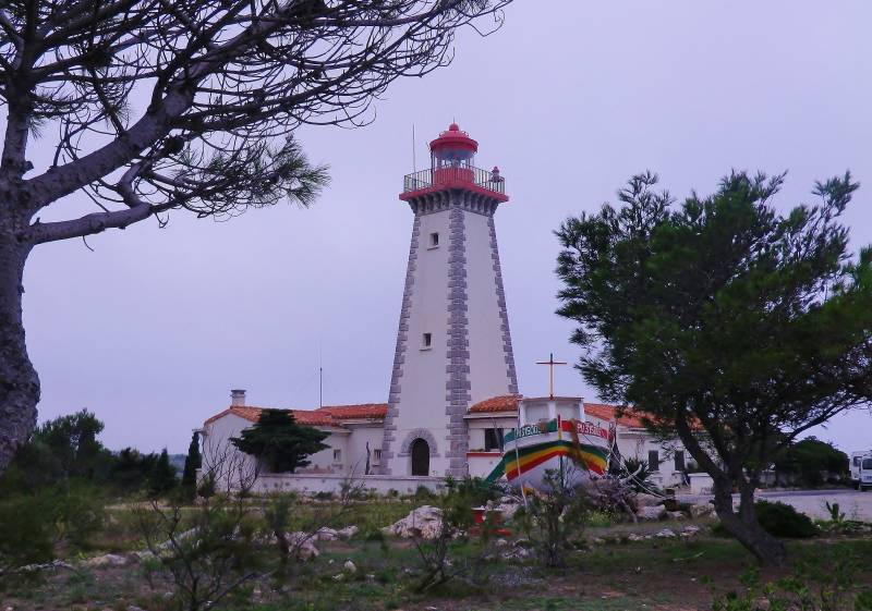 We gaan op de fiets naar Port Leucate, zo'n tien kilometer verder. We zoeken een zaak die de accu kan doormeten. In de haven komen we een grote tegen, vooral gericht op boten. En gelukkig hebben ze ook accu's. We spreken af dat we morgen met de accu langskomen. Vanmiddag naar de vuurtoren gewandeld, hoog op een klif. Geen wind, maar ook geen zon vandaag. Er zitten hier veel surfers en dus ook surfzaken, wel vijf stuks die nog allemaal open zijn. Maar omdat er geen wind is loopt iedereen zich te vervelen.