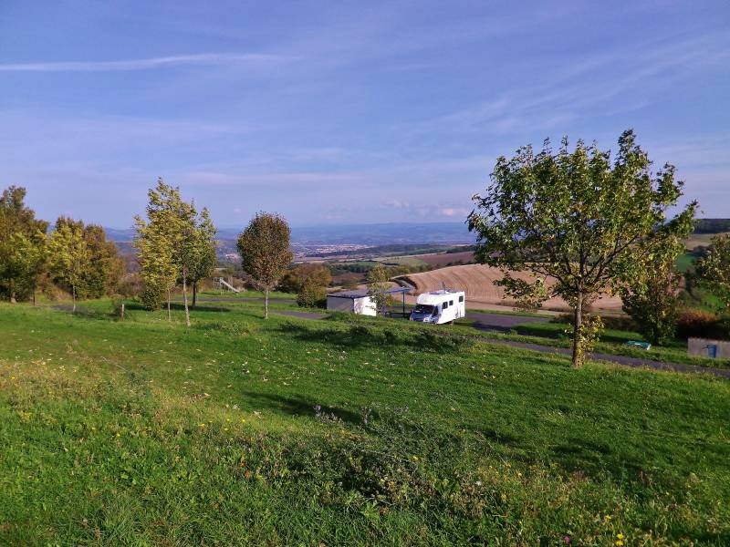 De terugreis gaat nu echt beginnen. We rijden driehonderd kilometer naar het noorden. Over de prachtige A75, via Millau, richting Clermont Ferrand. Ter hoogte van de plaats Issoire rijden we twintig kilometer het binnenland in en komen uit in de dorpen Tourzel en Ronzieres. Daar is een geweldige camperplek: met water, een toilet, koude douche en zelfs een stopcontact. En dat is erg handig als je huishoudaccu het niet goed meer doet. En dat alles, inclusief het mooie uitzicht en de zon, is gratis.