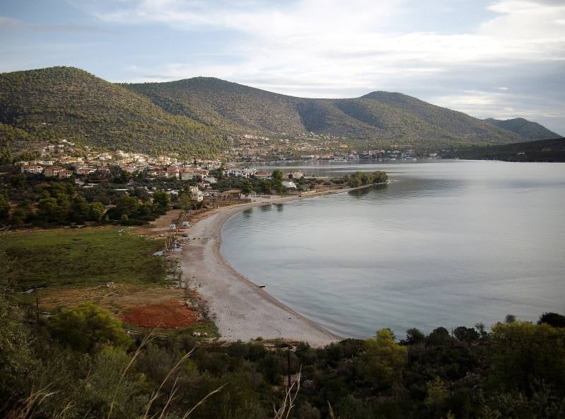 De vorm van de Peleponnesos is een hand met een duim en drie vingers naar beneden gericht. Vandaag zijn we bijna rond de duim getrokken. We hebben eerst een erg oud tempelcomplex bekeken bij Epidavos: nog veel stenen in de war daar. Daarna verder naar het zuiden en een camperplek gezocht in de plaats Galatasi. Vonden wij niet bijzonder, dus verder gereden en uitgekomen op een enorm strand bij Salandi. Een uitgestorven vallei met een enorm hotelcomplex: vijf jaar geleden gesloten en nu totaal vervallen. Er staan zo'n vijftien campers, vooral uit Oostenrijk. En in de avond heel veel Griekse muggen....