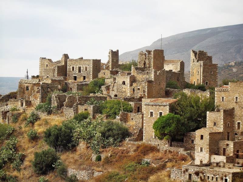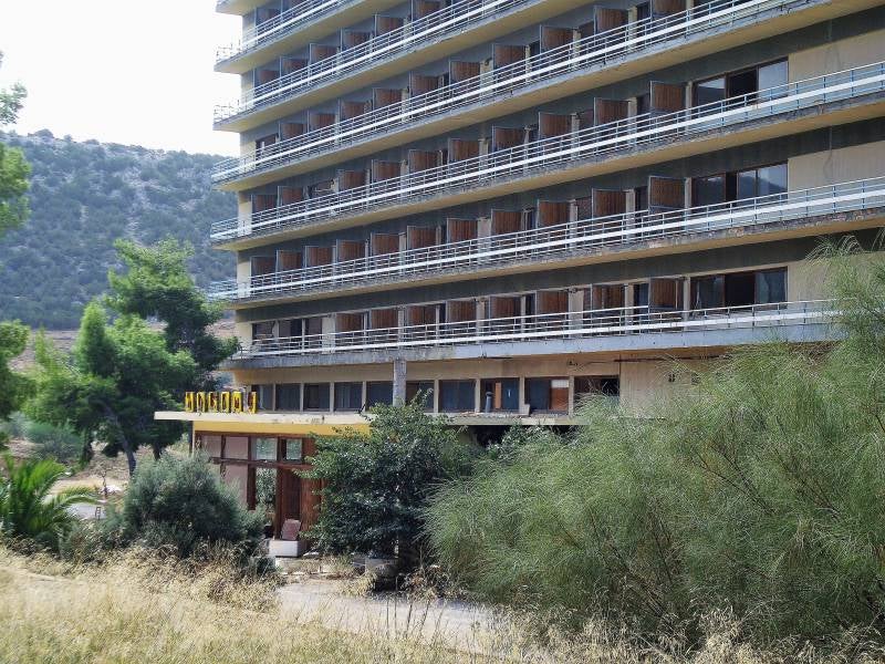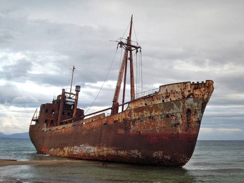 De zon schijnt weer volop als we 's ochtends verder trekken. We gaan naar het begin van de derde vinger, richting de plaats Githio. Daar in de buurt ligt een klein strandje bij een scheepswrak, waar je met een camper kunt staan. Er is ook een restaurant waar je koud kunt douchen. We hebben veel gewandeld, gezwommen en in de zon gezeten. En weer een enorm hotelcomplex tegengekomen. Totaal ontredderd en verlaten. Volgens de folders en papieren die er nog lagen, al zo'n twaalf jaar.