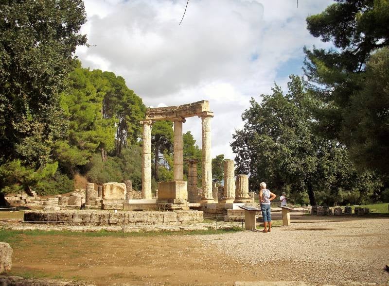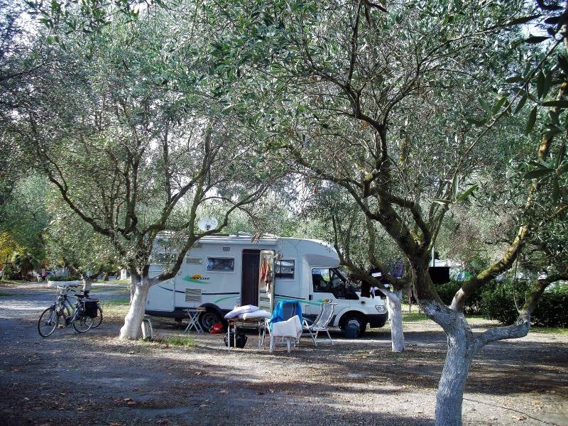 Vanmorgen weer een eind verder getrokken langs de zee via allerlei kleine weggetjes. En ook een mooie camperplek ontdekt in een pijnbomenbos, zelfs met waterkranen. Maar 's middags eerst naar Olympia gereden, het beroemde dorp in de bergen. Daar zijn ooit de eerste Olympische spelen gehouden. Je hebt een hoop fantasie nodig om je een voorstelling te kunnen maken hoe het complex er ooit heeft uitgezien. Ook hier weer veel stenen en nog enkele pilaren. Maar enorm druk: zeker dertig bussen met toeristen. Om vier uur rijden we terug naar de camperplek in het pijnbomenbos, waar we opnieuw Zwitsers tegenkomen die we de eerste week ook al ontmoet hebben.