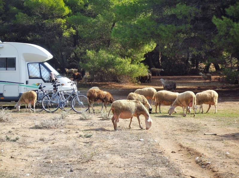 We zijn nog maar een dag in Korvos gebleven. Gewandeld en natuurlijk weer gezwommen. Tegen de avond vertrekken bijna alle andere campers. De dichtstbijzijnde camper staat tweehonderd meter verder. Het wordt een rustige nacht.