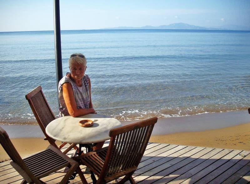 Twee keer per dag wandelen, zwemmen en op een luchtbedje dobberen: wat wil je nog meer. En de Griekse witte wijn is ook al erg lekker. Morgen gaan we verder: het water is bijna op en de wc bijna vol, dus we moeten wel. En we hebben genoeg Oostenrijks gepraat.