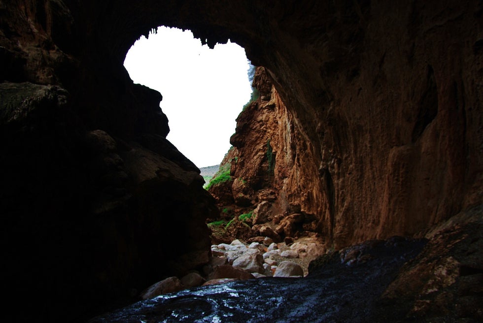 Het is alweer dag negenentwintig van ons verblijf in Marokko. We verlaten Marrakech en gaan nog even de bergen in. We rijden naar de plaats Ouzoud. Alles bij elkaar honderdzeventig kilometer. We stoppen halverwege in de plaats Demnate, waar we een natuurlijke brug bekijken. Een soort overdekte kloof. Via een stevige klauterpartij kun je onder de "overkapping" door en aan de andere kant weer omhoog. We worden begeleid door een amateurgids, die precies weet via welke stenen je wel en niet kunt lopen. Uiteraard tegen een vergoeding. We staan nu op Camping Zebra in Ouzoud. Deze camping wordt gerund door de Nederlanders Paul en Renate. En dat zie je aan alles. Vooral het sanitair is geweldig. Zo mooi kom je het zelfs niet op campings in Nederland tegen. 's Avonds met de groep in het restaurant gegeten. Een prima Marokkaanse maaltijd.