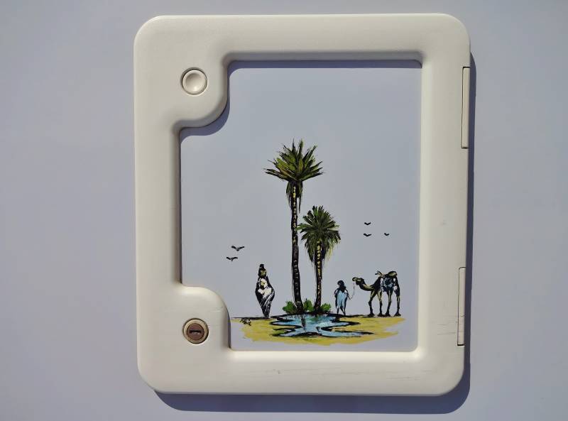 We hebben besloten om nog tot zaterdag hier in Tafraout te blijven. Dan kunnen we nog het begin van het Amandelfeest meemaken. Elk jaar een enorm evenement met muziek, dans, een beurs enzovoort. Het dorp is versierd met vlaggen en iedereen is opgewonden. Zo is de soepmevrouw vandaag voor het laatst geweest. Na het weekend is er pas weer soep als het feest voorbij is. Vanochtend kwam de kunstschilder langs met een mapje met voorbeelden van idyllische Marokkaanse plaatjes die op een camper geschilderd kunnen worden. Wobbie gaat onderhandelen. In het luik van het toilet zitten twee deukjes die met een beschildering minder cq onzichtbaar worden. De deal is uiteindelijk geen twintig euro, maar vijf plus wat dameskleren. Na het middagdutje komt hij schilderen. Als we tegen half een terug komen van een wandeling, is de klus echter al geklaard. Over smaak valt niet te twisten, de deukjes zijn echter vrijwel onzichtbaar. De middag wordt nuttig besteed met het installeren van de wireless router. Met wat deskundig advies van buurvrouw Elly lukt dat uiteindelijk. Maar goed dat zij vanochtend niet vertrokken zijn zoals ze gisteren nog van plan waren. Het is hier ook zo leuk.