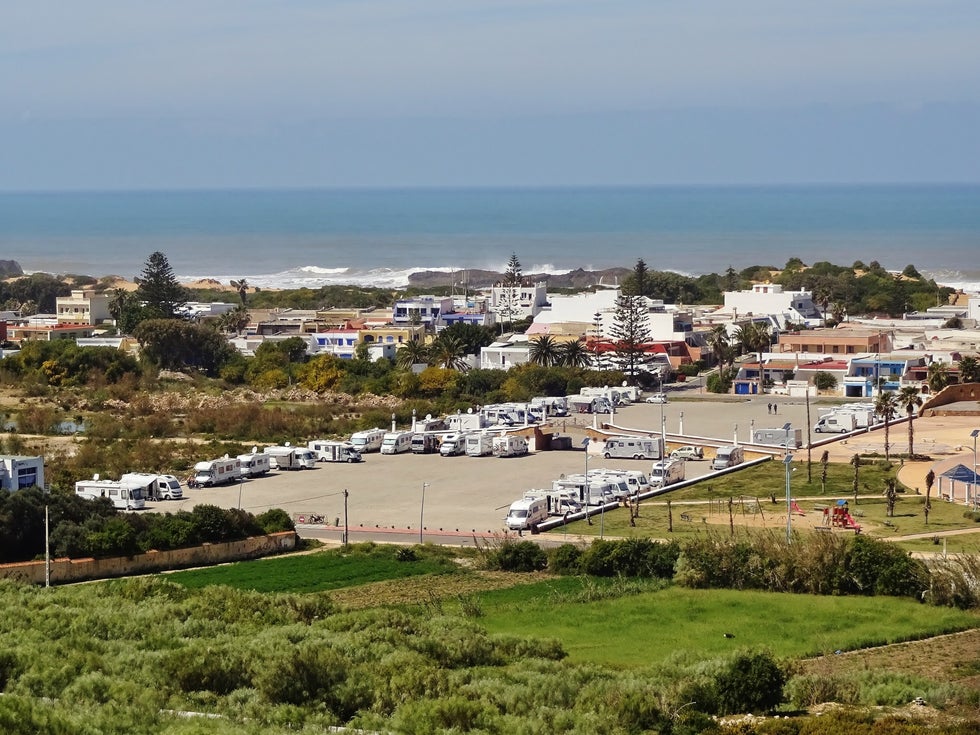 Op woensdagmorgen zien we een prijslijst hangen van de camping hier. Voor ons is dat nu omgerekend twaalf euro. En dat, we blijven Nederlanders, vinden we erg veel. De duurste camping tot nu toe. We besluiten om verder naar het noorden te rijden. Weer door het grote en drukke Agadir. Tien kilometer voorbij de stad maken we een tussenstop in Aourir, waar we weken geleden op de camping gestaan hebben. We gaan naar de woensdagmarkt op een enorm terrein met weer van alles en nog wat te koop. Wij gaan voor de groente en het fruit. Met een enorme zak vol voor een euro of acht komen we terug bij de camper. Na nog koffie gedronken te hebben, met cake voor iets meer dan een euro, en gezellig gekletst te hebben met Nederlanders die hier in de buurt een huis hebben, gaan we weer verder. We rijden honderdveertig kilometer naar het noorden en komen weer uit in Sidi Kaoki. Ook hier hebben we weken geleden gestaan. Nu echter niet op de luxe camping, maar één ervoor. Erg basic hier; water en afvalemmers en verder niets. Wel een mooi terrein met uitzicht op de omgeving en de wind valt deze keer gelukkig mee. De mist waarin we een groot deel van de dag gereden hebben, is hier verdwenen en we kunnen nog heerlijk in de zon zitten. De naam van de camping: Paradis Aicha Sidi Kaoki.