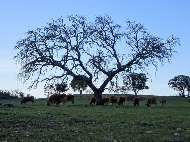 Het was weer koud vannacht. En weer is rondom het toiletgebouw alles bevroren. Zoals elke dag, na een hoop gedoe met een aggregaat en een föhn, kunnen we in de loop van de middag weer douchen. Op vrijdagochtend gaan we eerst op de fiets naar het dorp. Even naar de Chinese winkel en naar de supermarkt. Via een omweg komen we daarna in het gehucht Campilhos terecht bij een restaurant. We besluiten spontaan om er te gaan eten. Het is er barstensdruk, drie eetzalen vol: we kijken onze ogen uit. En wat we nou precies gegeten hebben, geen idee. Waarschijnlijk het menu van de dag: onder andere varken van het spit. Het was in elk geval lekker.