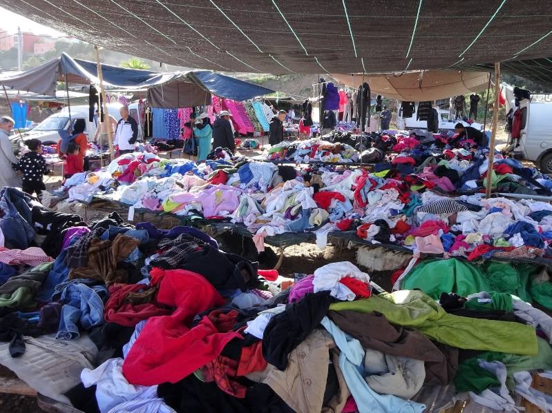 Een "gewone" dag in Tafraout. Gymmen en de hammam in de ochtend, in de middag wat boodschappen doen en naar de markt. En Wobbie heeft een handwerkzaakje ontdekt. Ritsen, textielverf en grote klossen garen voor Marokkaanse prijzen. De eerste bestelling uit Europa is al binnen.