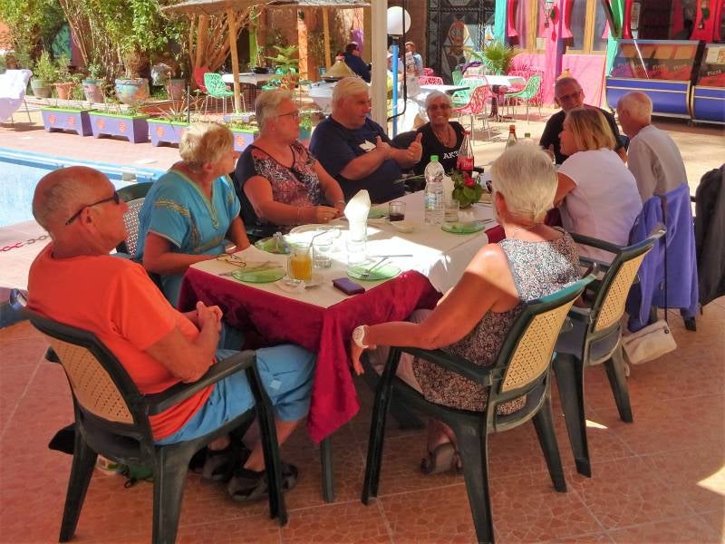 Op zondag gaan we weer uit eten. Deze keer bij Restaurant Marrakech. De tajines met rundvlees daar zijn de lekkerste van heel Tafraout.