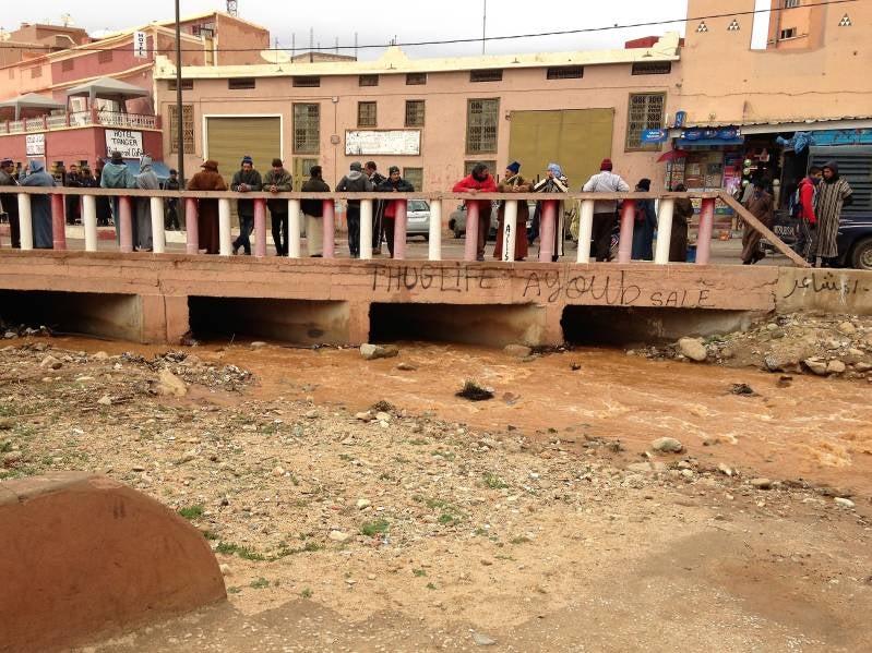 Volgens de deskundigen hier krijgen we erg veel regen vandaag. Omdat het in de ochtend nog droog is, gaan we de stad in. . Het winkeltje waar we de telefoonkaart gekocht hebben, is en blijft gesloten deze dag, hoe vaak we er ook langs lopen. Bij een buurman, ook een specialist, leggen we het probleem voor. Volgens hem hebben we een beltegoed voor enkel in Marokko. Voor opnieuw tien euro kunnen we een tegoed kopen voor het bellen naar Europa. "Je kunt de pot op" zeggen we in het Nederlands tegen hem: gelukkig de enige taal waar hij niets van weet. Na nog wat groente ingeslagen te hebben op het terrein waar morgen de echte markt plaats vindt, gaan we terug naar de camping. Daar vragen we de man van de receptie om raad over het telefoongedoe. Hij, een aardige vent, gaat met de telefoon aan de slag. Na tien minuten pielen krijgen we de telefoon terug. Conclusie: we kunnen naar Europa bellen en hebben nog een beltegoed van 399 dirham (zo'n 35 euro). Vraag niet hoe het kan, maar we profiteren ervan. Na de middag gaan we eten, buiten op een soort pleintje. Dat hebben we er voorgaande jaren al vaker gedaan. Voor Wobbie een tajine-geit, voor Wim eentje met kip. En hoewel het nog droog is, is het er erg fris en het waait iets te hard. En of het daaraan ligt weten we niet, maar we hebben wel eens beter gegeten. En tot overmaat van ramp raakt Wobbie ook nog eens een halve kies kwijt omdat er een pit in een olijf zit. We zijn net op tijd terug bij de camper als het gaat regenen, honderd dirham en een halve kies lichter. Tijd om het internet af te struinen naar goede tandartsen in Marokko. Mogelijk zit er morgen ook één op de markt hier, maar die trekt waarschijnlijk alleen maar.