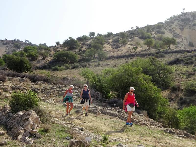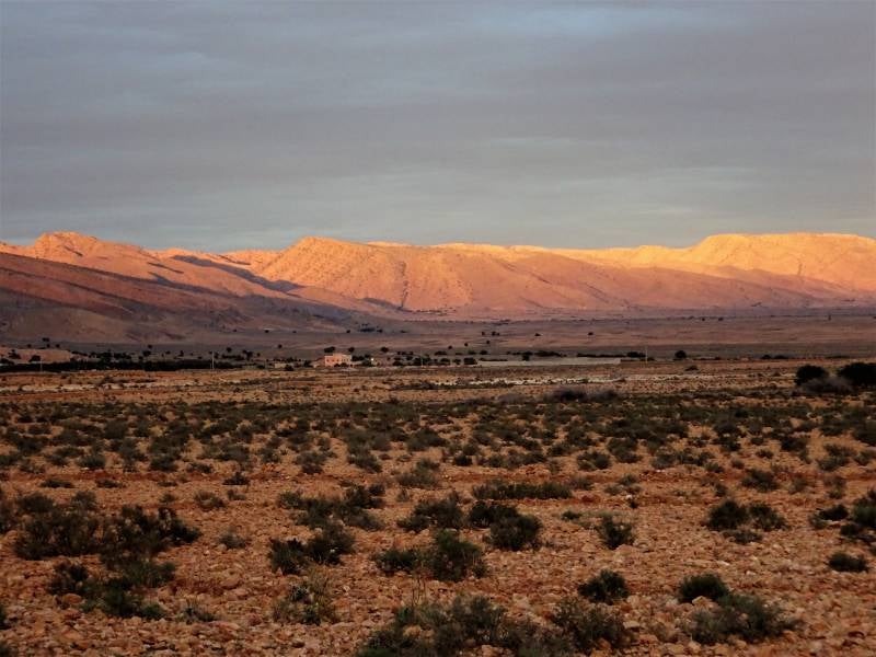 Vandaag maar weer eens een wandeling, een soort training voor de verstuikte enkel van Wobbie. Over een min of meer vlak terrein onder een stralende zon en geen wind. Die steekt weer op rond twee uur, zoals ook de afgelopen dagen. Aan het einde van de middag gaan we met Frank en Ria naar de banketbakkerij van Omar en daarna onder de douche bij de hammam. Allebei als onderdeel van de afscheidstournee hier.