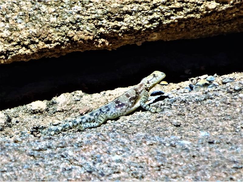 Het is nog steeds bewolkt bij het opstaan, we gaan maar weer snel op pad. We nemen opnieuw de tolweg die, zeker in de buurt van grote steden, steeds drukker wordt. Wat ook opvalt zijn de vele grote bouwactiviteiten. Overal worden hele woonwijken uit de grond gestampt, viaducten gebouwd en wegen aangelegd. Volgens ons gaat het economisch ook goed met Marokko. We rijden door tot de afslag naar de kustplaats Oualidia, waar zelfs de zon schijnt! Tot nu toe hebben we daar altijd op de camper-parking gestaan. Deze keer kiezen we voor een gloednieuwe camping, even buiten het dorp: Laguna Park. Mooi aangelegd met plekken voor campers, kampeerders en appartementen en tenten voor de verhuur. Inclusief alle voorzieningen kost dat negen euro per nacht. Er staan nu acht campers. Beneden bij de zee op de camper-parking staan wel veertig campers: zonder voorzieningen kost dat nog geen drie euro per nacht. We maken een wandeling langs de zee. Op het strand staan overal stoeltjes, tafels en barbecues waar je vers gevangen vis kunt eten. Het is er gezellig druk. En dat is op de camping toch wat minder met hier en daar een camper, een hele grote sprinkhaan, een hagedis en zelfs een kameleon.