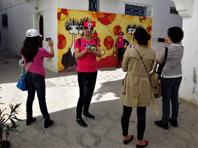De parkeerplaats ligt aan een drukke, doorgaande weg. Veel verkeer dus, maar ook veel wandelaars die nieuwsgierig langs de campers lopen. Dan kun je de gordijnen dichtdoen en de wereld buiten sluiten, maar je kunt ook voor het raam gaan zitten en je verbazen over alles wat er voorbij komt. Wij kiezen voor het laatste. Maar vanwege het drukke verkeer zijn we vroeg wakker op zaterdagmorgen. We kijken even naar de Olympische Spelen en besluiten om opnieuw het Place Assarag, het grote plein, op te gaan zoeken. We proberen het met de IPhone van Wobbie, maar dat lukt niet. Een IPhone en Marokko is geen gelukkige combinatie. Uiteindelijk vinden we het plein op eigen kracht. We drinken er koffie en kijken ondertussen naar een optreden van een muziekgroep. Waarbij het voor ons gevoel niet om de muziek gaat, maar om het theater er omheen. Waar we overigens niets van snappen. Behalve dan op het moment dat een fotograferende toerist nadrukkelijk wordt aangespoord te betalen voor de genomen foto's. Op de terugweg gaan we op een terras eten. Allebei jus, Marokkaanse salade, tajine-kip en sinaasappel met kaneel na. Dat alles voor zo'n vier euro per persoon: je kunt er eigenlijk niet zelf voor koken. Na de pauze, heerlijk in de zon, gaan we opnieuw aan de wandel. Nu naar de leerlooierij, waar we acht jaar geleden tijden onze eerste Marokkoreis, ook geweest zijn. Met opnieuw wat moeite vinden we die uiteindelijk: in de buurt van de poort Bab Taraghount. Op een ontzettend smerig terrein, daar vlak bij, zien we ook acht campers staan: niet onze plek. En de leerlooierij valt ook tegen. In onze herinnering zag het er acht jaar geleden veel levendiger en nog volop in bedrijf uit. Nu maakt het een erg verlopen indruk. En de verplichte rondleiding stelt al helemaal niets voor: binnen no time ga je van de ene verkoopschuur naar de andere. Wim koopt er nog wel een riem voor zijn broek (zijn eigen riem ligt in Apeldoorn). Tachtig dirham dankzij het afdingen van Wobbie. Waarop vervolgens een toneelstuk opgevoerd wordt over het wisselgeld. Na een hoop gedoe krijgen we uiteindelijk wat ons toekomt en gaan er maar snel vandoor. Terug op de parkeerplaats is de parade voor de campers al weer in volle gang: er wordt wat afgezwaaid.