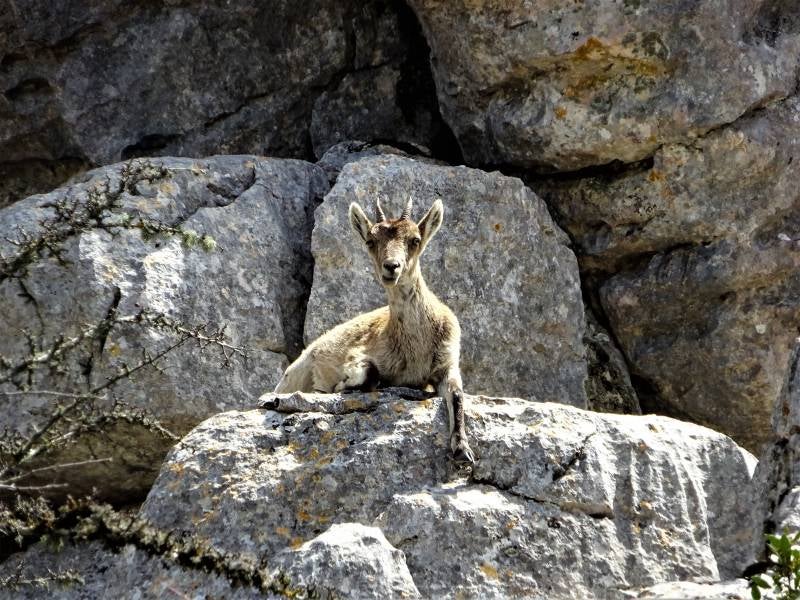 Op vrijdag morgen vroeg zijn we keurig op tijd voor twee lossen kaartjes. Tien euro per stuk inclusief een witte helm. De wandeling is prachtig met tal van uitkijkjes door de kloof. Met af en toe nog de sporen van het oude pad van meer dan honderd jaar geleden. Dat oude pad moet een kunstwerk geweest zijn, zeker voor die tijd. Het nieuwe pad mag er overigens ook zijn. Overigens moet je niet al te veel last hebben van hoogtevrees. Naar het beginpunt is het een half uur lopen, de tocht zelf anderhalf uur en daarna opnieuw een half uur naar de bus die je terugbrengt naar het beginpunt. Al met al een ochtend vullend programma. Vervolgens rijden we terug naar de grote plaats Antequera. Daar in de buurt ligt een natuurpark met de naam El Torcal. Boven op een berg ligt een informatiecentrum te midden van heel bijzondere rotsformaties. Vooral horizontaal, grijs gestapelde rotsblokken. Een soort Tafraout in Marokko, maar dan anders en in Spanje. Op een uitgezette klauterroute van drie kilometer komen we behalve fraaie rotsformaties, ook nog een soort berggeit tegen. Een prachtig beest en ook nog fotogeniek. Als we uitgekeken en uitgeklauterd zijn, gaan we terug naar de kust. Naar de camperplaats in de badplaats La Cala de Mijas. Daar zijn we twee jaar geleden ook geweest. Het is er druk met wel vijfendertig campers.