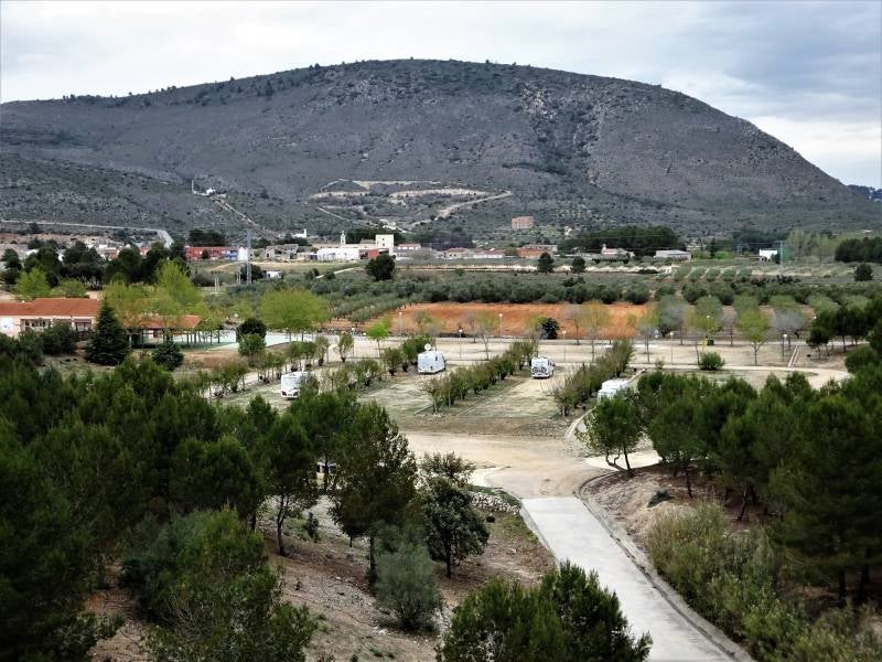 Na een windstille nacht begint de dag zonnig. Toch gaan we weer rijden, nu tweehonderd kilometer verder naar het noorden. De TomTom bepaalt de route voor vandaag en die gaat langs Murcia, Elche, Alicante en Alcoi. We stoppen in het gehucht Bellús. Even daarbuiten ligt een enorm complex met een begraafplaats, voetbalveld, picknick terreinen, een stuwmeer en dus ook een fraaie gratis camperplaats (foto). Eenmaal geïnstalleerd gaan we op onderzoek uit. Het gehucht is stil en een beetje doods. Maar aan de buitenkant zijn een paar goed aangegeven wandelroutes te vinden. Eén ervan loopt door een kloof met water en leidt langs enkele grotten waar heel lang geleden mensen geleefd hebben. Helaas allemaal voorzien van hekken. Bij de bekendste grot, de Cova Negre, keren we om en gaan terug. Het is ondertussen zwaar bewolkt en het miezert wat. Na bijna tien kilometer zijn we terug bij de campers, er staan er inmiddels vijf. Voor in de avond is er nog een begrafenis, waarna het erg stil wordt om ons heen.