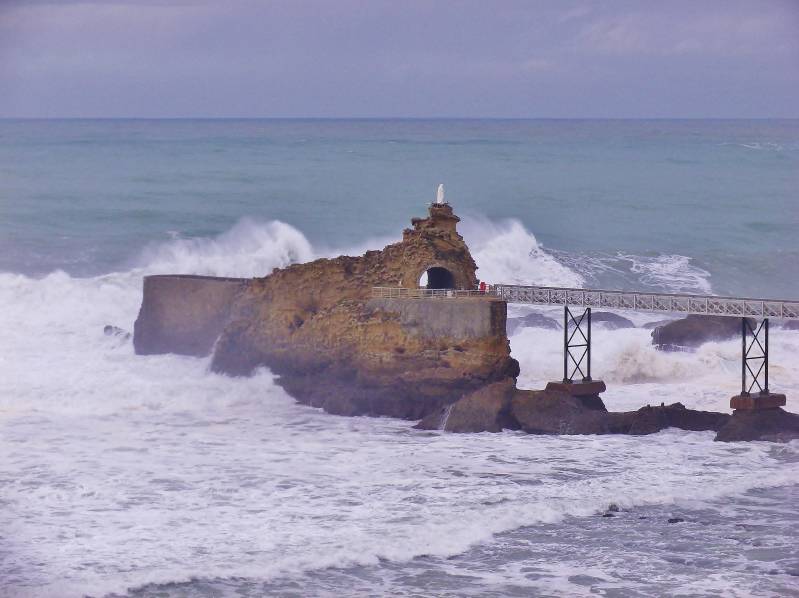 Na veel regen en wind de afgelopen nacht duurt het even voor we in de loop van de ochtend de zon weer zien. We zitten dan inmiddels al op de snelweg van Bordeaux naar de Spaanse grens. We stoppen in Biarritz. Daar ligt in de wijk Milady een camperplek vlak aan zee. 's Middags langs die zee in de zon naar het centrum gewandeld. En met verbazing naar de hoge golven gekeken.