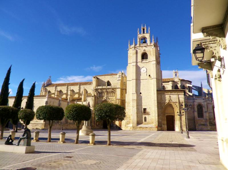We gaan naar Spanje en passeren de Pyreneeën. Het is er druk en bovendien waait het erg hard. En dat maakt het rijden met een camper lastig. We overnachten in Palencia, op de camperplek vlak bij het centrum. Een populaire plek, we zijn er zelf al vaker geweest, en ook nu zijn tegen de avond alle zestien plekken bezet. We zijn er rond half drie en wandelen naar de kathedraal en het centrum. Helaas zijn, op een enkele uitzondering na, alle winkels gesloten. Tot half zes, en daar willen we niet op wachten. Bovendien slaat het weer om: van veel wind en zon naar een lange regenbui.