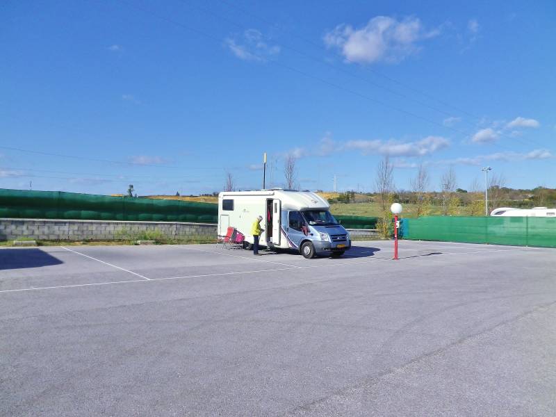 Door de regen van de afgelopen dagen verschijnen er steeds meer plassen rondom de camper. De grond is verzadigd en het wordt erg modderig. Tijd om Moncarapacho te verlaten. Via internet komen we aan de gegevens van een gloednieuwe camperplek in de buurt van Albufeira. Vijfhonderd meter van het strand van Falesia, vlakbij het dorp Olhos de Aqua. Het is een mooie plek vlakbij een prachtig strand, vooral als de zon schijnt. Maar die schijnt vandaag niet meer. In tegendeel, tegen vijven begint het eerst te regenen en daarna te hozen. Gelukkig is deze camperplek "waterproof" en hebben we, behalve het verplicht binnen zitten, weinig last. De dinsdag begint nog droog en kunnen we de omgeving verkennen. Tot onze verbazing zijn er gisteren tijdens een windhoos een aantal bomen omgegaan op een crossterrein. Op tweehonderd meter van de camperplek! De omgeving bestaat verder uit veel erg luxe parken en appartementen, waar nu nog weinig te beleven valt. Zeker niet bij het weer dat we in de middag en avond voor de kiezen krijgen; veel wind en heel veel regen.