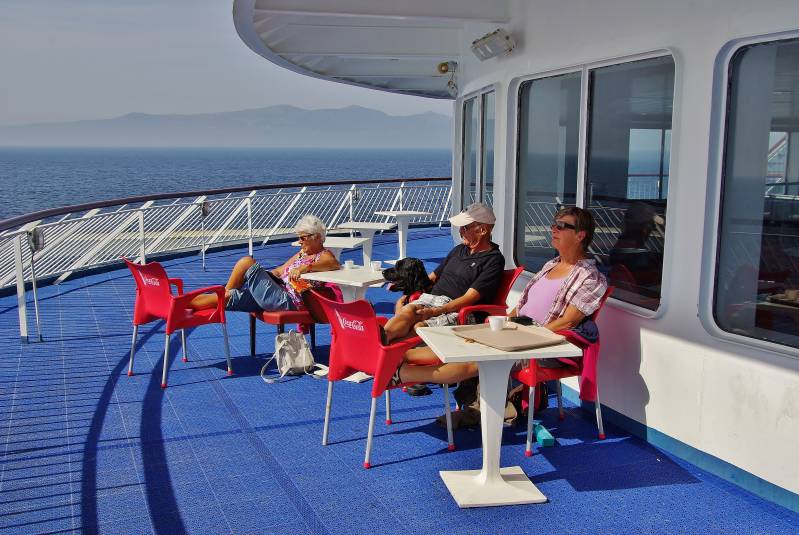 We zitten nog tweehonderd kilometer van het ticketbureau in Algeciras vandaan. We besluiten er naar toe te rijden. Nog onderweg krijgen we bericht van Marinus en Catrien dat zij daar vandaag ook kunnen zijn. Dat komt goed uit, want qua weer is het opnieuw een sombere dag en in de "outlet winkels" in Algeciras hebben we even geen zin. Aan het einde van de middag treffen we elkaar op het parkeerterrein bij het ticketbureau, waar we ook kunnen overnachten. Na de koffie gaan we de tickets kopen voor de overtocht. We krijgen er net als vorig jaar, weer een fles bubbels en een cake bij. Na het eten gaan we nog even met z'n vieren naar de Mc Donalds. Voor koffie, internetten en het invullen van de formulieren voor de overtocht. Om kwart over acht gaan we rijden morgen, om tien uur vertrekt de boot.