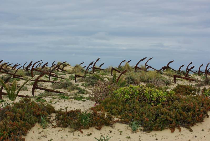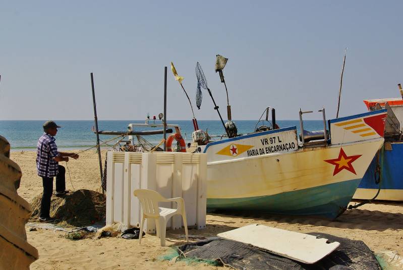 Zo langzaam maar zeker gaan we aan de terugreis beginnen. We vertrekken uit Silves als de kudde geiten achter de camperplek, zoals elke ochtend, is langs getrokken. En rijden honderd kilometer richting Spaanse grens. We willen naar de zee vanwege de erg hoge temperaturen de komende dagen. De camperplek in Manta Rota ligt pal aan het strand, dus daar gaan we naar toe. Onderweg komen we veel Spaanse campers en caravans tegen. Een veeg teken, zo zal blijken. In Manta Rota worden we bij de ingang van de camperplek al gewaarschuwd door de parkeerwacht. Alles is vol, maar we krijgen tien minuten de tijd om te zoeken en mogelijk "iets te regelen". We hebben geluk. Een landgenoot is bereid zijn camper wat te verzetten, waardoor er alsnog een plek vrij komt. Wel krap, maar we doen het er maar mee. Een groot deel van de campers hier op dit moment komt uit Spanje. Kennelijk een lang paasweekend en/of vakantie. Een goede les voor de volgende keer, zo leer je elke weer wat bij. Op vrijdag is het wat minder zonnig, maar erg warm. Veel gewandeld vandaag en tussendoor uitgerust op het strand. De zaterdag begint zwaar bewolkt. We pakken de fietsen en gaan naar Tavira, twaalf kilometer terug. Twee markten afgestruind en gegeten in het overdekte winkelcentrum. Op het buitenterras, de zon schijnt inmiddels weer volop. Of dat zo blijft is maar de vraag, de weerberichten geven twee dagen regen aan. We gaan morgen in elk geval honderd kilometer naar het noorden, naar Mina de Sao Domingos.