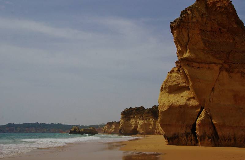 Een moeizame nacht, we werden bestookt door muggen. Geen idee waar die plotseling vandaan kwamen. Om het kwartier de lamp aan, een mug zoeken en dood slaan. Na de tiende mug zijn we de tel kwijtgeraakt. 's Ochtends besluiten we om weer wat verder te trekken. Nu naar Albufeira. We stoppen even in Paderne voor een markt. Een traditionele markt met producten uit de streek: aardappelen, kippen, sinaasappelboompjes enzovoort. Na een kwartiertje hebben we alles gezien en gaan naar de camperplek van de voetbalclub in Albufeira. In de middag zijn we de stad in geweest. Het is er druk, alles is open en de terrassen zijn goed bezet met vooral Engelse toeristen. Allemaal achter het bier voor grote televisieschermen. Kennelijk is het vakantietijd in Engeland. Op de zondag staat er een wandeling langs de rotskust gepland. We gaan met de bus naar Olhos de Aqua. En dat is iets te ver. De mooie kust begint al een dorp eerder, bij Ouro. Alles bij elkaar zijn we vier uur onderweg: vijftien minuten met de bus en de rest te voet. Het weer vandaag: voor het eerst weer een bloedhete dag.
