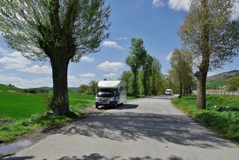 Het zou een simpele dag worden; kilometers maken en op weg naar Frankrijk. Maar de dag verloopt totaal anders. We gaan om negen uur rijden met veel zon, maar ook met een koude wind. We passeren Burgos en stoppen op een parkeerplaats voor koffie, het is half elf. Als we weer weg willen doet de camper helemaal niets meer. We bellen het alarmnummer van de verzekering. Die gaan "hulpdiensten" inschakelen en zullen terug bellen. Na anderhalf uur wachten bellen we zelf weer. Er komen geen hulpdiensten. We moeten het alarmnummer van de politie bellen: die gaan bepalen wat er verder moet gebeuren. Wachten op de politie dus. Als die komt is de conclusie dat we rustig mogen blijven staan en wachten op de "hulpdiensten" die via de verzekering geregeld moeten worden. Om een lang verhaal kort te maken, we hebben een probleem met de startaccu's. Via de startkabels van een enorme sleepwagen wordt de camper weer gestart en moeten we in de volgende plaats Briviesca, naar een garage. Daar zijn we om drie uur, de garage gaat echter pas om vier uur weer open. De twee startaccu's zijn binnen een kwartier vervangen. Maar we moeten afrekenen met de baas en die is er nog niet. We moeten weer wachten. Om vijf uur rijden we weer en zoeken een camperplek in de buurt op. En die vinden we bij de plaats Logroño, bij een groot recreatiepark met een meer. Veel auto's, maar geen campers; wij zijn de enige. En al die auto's vertrekken in de loop van de avond en wij blijven eenzaam achter. Morgen een nieuwe verslag, als we het nog kunnen navertellen.