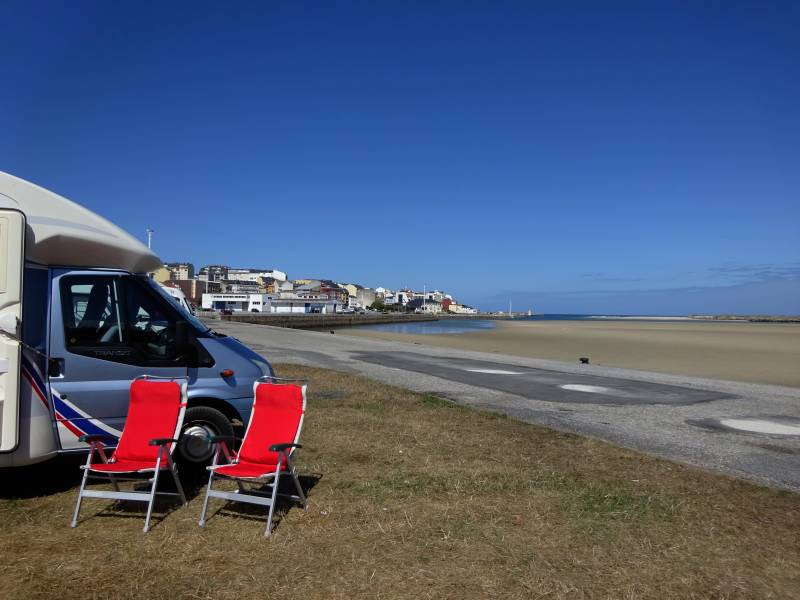 Een week geleden vertrokken we om negen uur uit Apeldoorn. Vandaag, weer om negen uur, rijden we verder langs de Spaanse noordkust. Via Bilbao rijden we tot vlak voor Santander en stoppen in het dorp Somo. Een enorme windhoek en bijna alles staat in het teken van het surfen. We staan op een dure camperplaats van maar liefst negen euro. Van de veertig plekken zijn er slechts zeven bezet, kennelijk te duur dus voor veel camperaars. Het enige voordeel van deze plek is, behalve de ruimte, de Wifi (inclusief). In de middag lopen we een flinke ronde. Via de surfstranden naar het dorp en vervolgens via een iets te lange omweg, terug naar de camperplek. Op donderdagmorgen staan we op met regen, en dat blijft een groot deel van de dag zo. Desondanks kiezen we een route door de "Picos de Europa", het beroemde gebergte hier in het noorden van Spanje. Een mooie route door een prachtig gebied. Helaas weinig vergezichten vanwege het slechte weer. We rijden de grote plaatsen Gijon en Oviedo voorbij en stoppen in het stadje Foz, pal aan de kust. Met vlak voor het dorp een camperplek op een brede, lange strook gras. In de loop van de avond staan er zo'n veertig campers. Bijna allemaal met de neus naar de baai, een soort uitloper van de zee. En, niet onbelangrijk, als we aankomen schijnt de zon weer.
