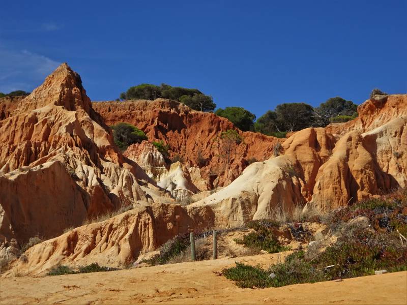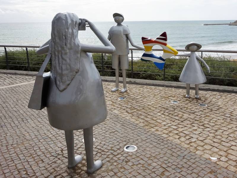 We staan nog steeds in Falesia. In de ochtend fietsen of wandelen en 's middags naar het strand. Op vrijdagochtend zijn we op de fiets naar Quarteira geweest. Bij de haven, vroeger een "ruige" camperplaats, ligt nu een mooi park met een aantal parkeerterreinen. Waar overigens bijna geen auto staat. Hadden ze een prachtige camperplek van kunnen maken. Wat verder opvalt is het grote aantal Chinese winkels. Allemaal volgens het Oud Hollands concept "In de winkel van Sinkel is alles te koop". Vorig jaar waren er nog maar een paar, nu wel een stuk of twintig. Het stadje maakt een wat armoedige indruk. Dit in tegenstelling tot de aan Quarteira vastgeplakte plaats Vilamoura. Met een enorme jachthaven en tal van dure restaurants en exclusieve winkels. En geen Chinees te bekennen. Op zaterdag- en zondagmorgen wandelen we. De ene dag links langs de zee, de andere dag rechts.