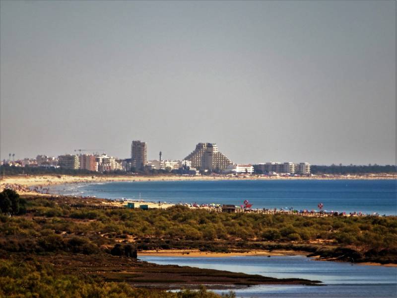 We gaan weer op pad. Eerst moet er een gasfles gevuld worden. En dat gebeurt in het gehucht Quelfes, bij Olhao. Ook hier in Portugal wordt het vullen van gasflessen steeds lastiger. En daar waar het nog wel kan betaal je een beste prijs. Vorig jaar nog vijftien euro voor een volle fles, nu vierentwintig. Daarna verder richting de Spaanse grens, naar de camperplaats in Manta Rota. Er staan honderd en vijf campers, waaronder die van Thea en Emile. Er is nog één plek vrij en die pikken wij in. Thea en Emile gaan morgen verder naar Spanje en zijn speciaal voor ons hier nog een dag langer gebleven. Zij staan op en prachtige plek met zeezicht en in de schaduw van wat bomen. In de middag gaan we eerst weer zwemmen. De temperaturen blijven onveranderd hoog. Daarna gaan we eten met z'n vieren. De dames hebben samen een maaltijd bereid en daar wordt goed van gegeten. We zitten nog tot laat in avond buiten. Op woensdagmorgen nemen we afscheid van Thea en Emile: we zullen elkaar deze reis niet meer tegenkomen. Zo gauw ze van hun plek weg rijden, rijden wij er op en staan dus nu op één van de mooiste plekken hier. De rest van de dag rommelen we wat aan: wandelen, aan zee zitten, een praatje hier en daar en de cassette van het toilet legen. We passen ons gedrag naadloos aan, aan dat van de buren om ons heen. Op vrijdag gaan we weer fietsen. Via de Algarve fietsroute eerst naar Monte Gordo. Er is niet zoveel veranderd het afgelopen jaar. Nog altijd veel Hollanders op de terrassen. Alleen van het Hollandse eethuis "Ed en Willem" is de naam Ed verdwenen. De broodjes kroket zijn echter nog volop verkrijgbaar bij Willem. Na de koffie fietsen we nog even verder naar Vila Real voor de broodnodige boodschappen. We ontdekken dat er morgen markt is in een naburig dorp, Castro Marim (de tweede zaterdag van de maand). Dan weer op de fiets dus.