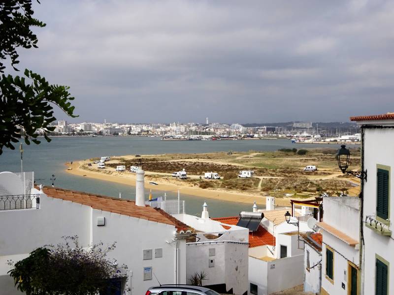Vier dagen Albufeira vinden we genoeg, weer tijd om verder te gaan dus. We rijden eerst met de camper langs de kust en stoppen bij een mooi strand; Praia de Salgados. Er staat veel wind en een flauw zonnetje. We maken een mooie wandeling langs de prachtige kust. Na een uur of twee zijn we terug bij de camper en na gegeten te hebben, gaan we naar het strand. Uit de wind is dat goed uit te houden. Tegen vier uur gaan we verder, naar Lagos. Vinden wij één van de leukste plaatsen in de Algarve. De camperplek, bij het stadion, kost nog steeds drie euro, inclusief lozen, toiletten en Wifi. We komen hier al een paar jaar. Helaas laat het onderhoud steeds meer te wensen over. Lagos zelf blijft een gezellige plaats. Echter in tegenstelling tot Albufeira, is het hier al erg rustig wat vakantiegangers betreft. Op vrijdag gaan we weer verder. Volgens de weerprofeten hebben we nog een aantal mooie dagen voor de boeg. Voor de tweede keer deze reis dus naar Alvor, naar de camperplek vlak aan zee. Heel veel zon, maar helaas ook erg veel wind; te veel voor het strand. Wandelweer dus, zoals ook op de zaterdag. De camperplek is behoorlijk bezet. In het dorp zelf is het erg rustig. Aan alles merk je dat het vakantieseizoen bijna ten einde is.
