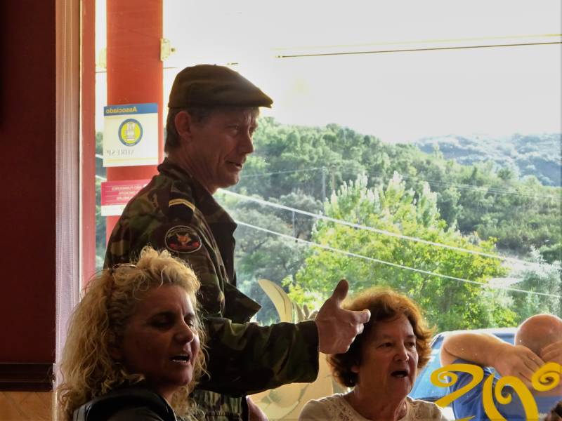 Twee relatieve rustdagen in Messines. Brood halen op de fiets, wandelen in de omgeving en rommelen rond de camper. Op zondagmiddag gaan we uit eten, samen met een Belgische buurman. We gaan aan de "black pork" bij Restaurant Marreiros, vlak in de buurt. Achter ons een tafel met Portugezen. Komt één van hen ietwat verlegen vragen of we er bezwaar tegen hebben dat ze gaan zingen. Wie zijn wij om dat niet goed te vinden. Wat volgt is een concert van volgens ons Fado-achtige liederen. Met prachtige solonummers van twee sterzangers. Heel indrukwekkend, we zijn er stil van. Terug bij de camper kunnen we nog net even in de zon zitten. Om vijf uur verdwijnt die achter een berg en om zes uur is het hier pikdonker.