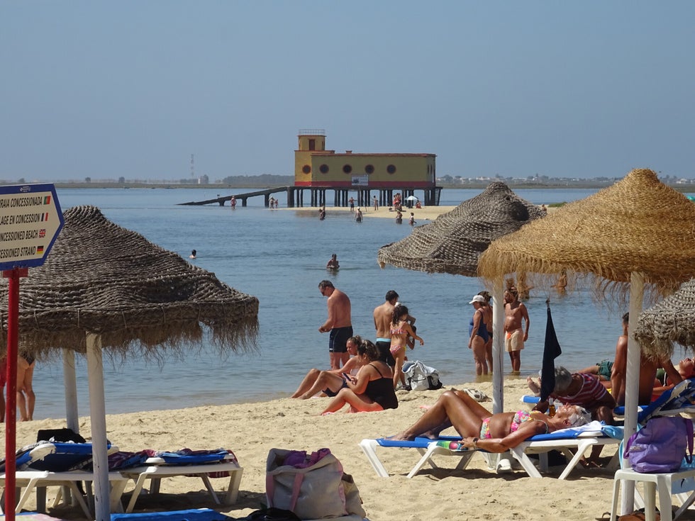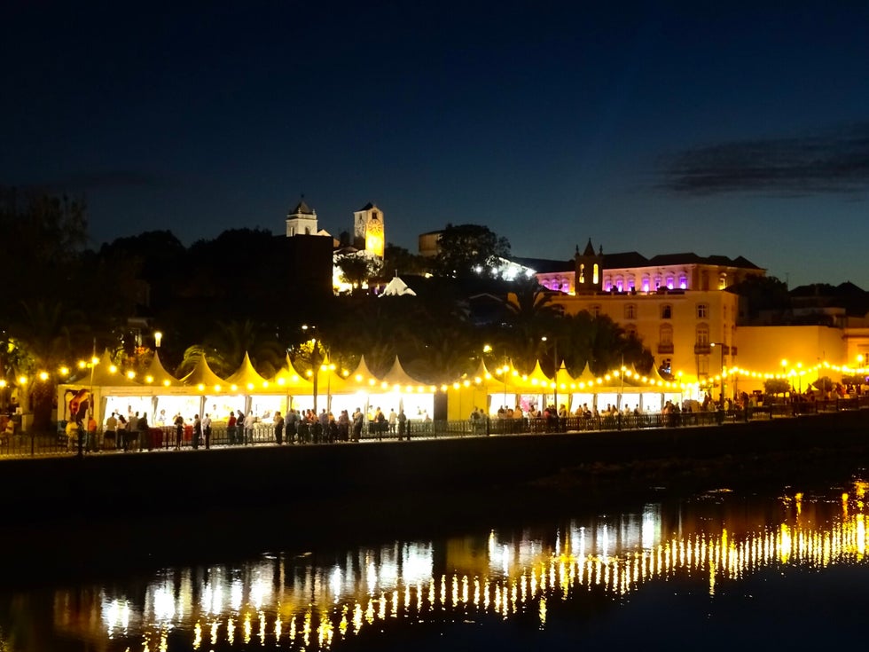 Het is weer een erg warme dag in Tavira. De temperaturen houden we niet meer bij: of het nou dertig of veertig graden is, het is allebei warm. Het wordt vandaag de tweede stranddag deze reis. “Ons” strand ligt aan een soort inham van de zee die uiteindelijk uitkomt in Tavira. Tegenover ons strand ligt de aanlegsteiger van het eiland "Ilha de Tavira”. Het is een gaan en komen met boten vol toeristen die daar de dag gaan doorbrengen. Je hebt er wat te kijken. Aan het begin van de avond gaan we Tavira in en maken een wandeling door het centrum. Op alle pleinen en in alle straten is wat te doen vanwege de “Mediterranean Diet Fair”. En overal kan gegeten en gedronken worden. Per ongeluk komen we terecht in een tent waar een Arabische groep muziek maakt; inclusief buikdanseres. En om in de sfeer te blijven zit er zelfs een Marokkaanse eettent met onder andere tajines. Gelukkig kun je er ook een pilsje krijgen. Al met al zijn we zo’n drie uur aan het rondneuzen. Wij vinden het een geweldig evenement.