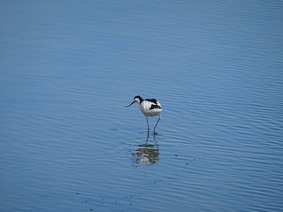 Eén van de vele vogels aan het foerageren in een zoutbekken.