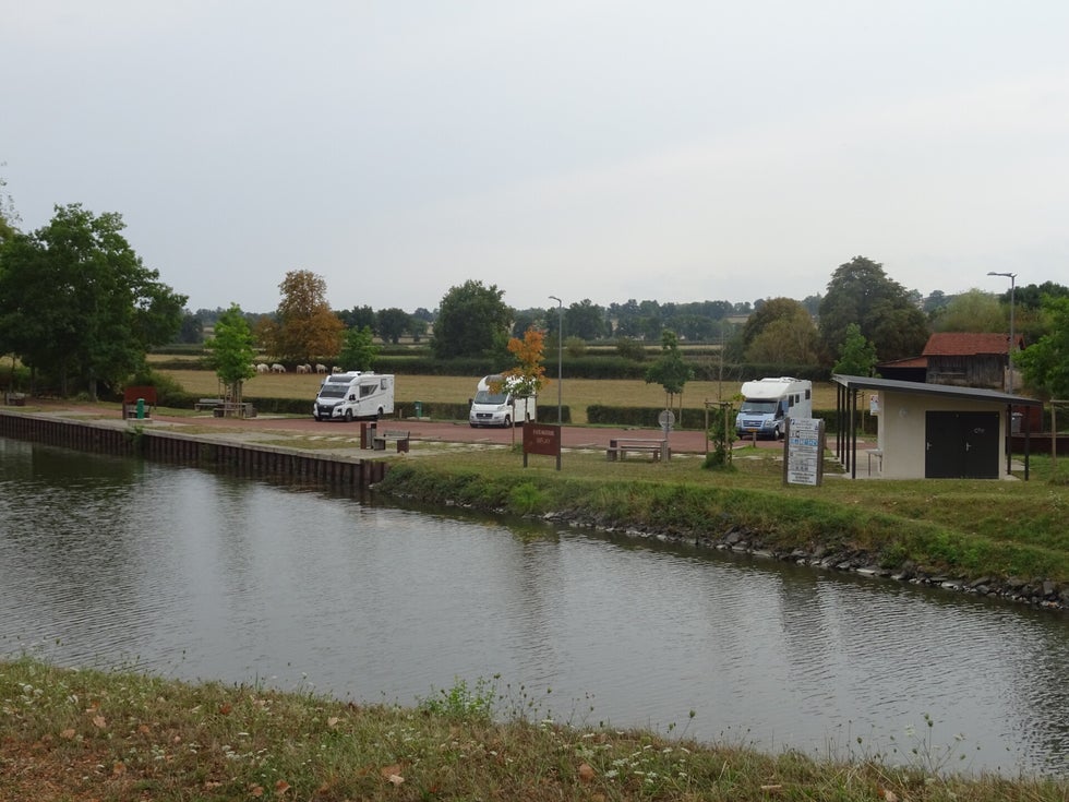 Ergens in de avond gisteren werden de aggregaten bij het meer uitgezet. Waarmee het gebrom in de verte voorbij was. Maar daarvoor in de plaats kwam het getik van de regen op het dak van de camper. Regen die overigens voorspeld was. En ook vandaag werden er forse buien verwacht, maar daar is gelukkig niets van terecht gekomen. Op een enkel miezerbuitje na werd het een alleszins redelijke dag. De eerste stop is op de camperplaats van Givry, midden in het wijngebied van de Bourgogne. Een camperplaats op een wat troosteloos plein. Goed genoeg om er te eten, maar niet om er langer te blijven. Dus rijden we nog een honderd kilometer verder naar het zuiden. We komen terecht op de mooie camperplaats van het dorp Melay, pal aan een kanaal. Behalve campers kunnen er ook boten terecht. Een plek met water, loosmogelijkheden en erg schone toiletten: allemaal gratis. Tegen een uur of vijf maken we een wandeling naar het dorp. Maar de weinige winkels die er zijn, zijn allemaal (nog) gesloten. Het maakt een wat sfeerloze indruk, zoals we die in veel dorpen tegenkomen. Even een ijsje halen is er niet bij, laat staan een drankje op een terrasje. Erg jammer, want de camperplaats hier is prima.