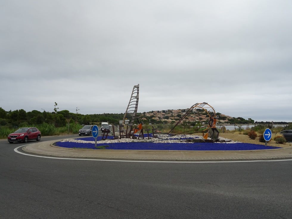 Het is tijd voor de eerste fietstocht deze reis. Een bekende route die we al vaker gefietst hebben: naar Gruissan. En vanaf nu noemen we dit op zaterdag de marktroute. De eerste komen we al gelijk in Saint Pierre tegen. Veel groter dan op andere dagen van de week en razend druk. De tweede markt zit een paar kilometer verder aan de boulevard van Narbonne Plage: ook al groot en druk. Tot slot komen we terecht op de derde markt, nu in Gruissan. Zo mogelijk nog groter en drukker. Met wat moeite vinden we ons vaste terras daar van een warme bakker. Het duurt even voor je aan de beurt bent, maar de koffie en het gebak zijn het wachten meer dan waard. Al die markten duren tot een uur of één en een half uur later zijn bijna alle kramen al weer verdwenen. Na vijfendertig kilometer zijn we om half drie terug bij de camper. En dat is maar goed ook, het is inmiddels bloedheet geworden. Tegen een uur of zeven gaan we de “stad” in. Het tijdstip dat de Fransen uitgeborreld raken en aanstalten maken om te gaan eten. En wij ook. Ergens op het grote plein zitten een aantal zaken voor eenvoudige toeristen. Pommes Frites, Kebab, Pizza’s enzovoort. Wij vallen er niet op. Dat geldt overigens ook voor het eten; dat viel ook niet op (of mee). Tot slot maken we nog een wandeling langs de zomerse kerstmarkt. Dachten we gisteren nog dat het om streekproducten zou gaan, maar het blijken met name sierraden te zijn. En andere spullen waarvan ze in Twente zouden zeggen; mooi grut, mar wat moj der toch met.