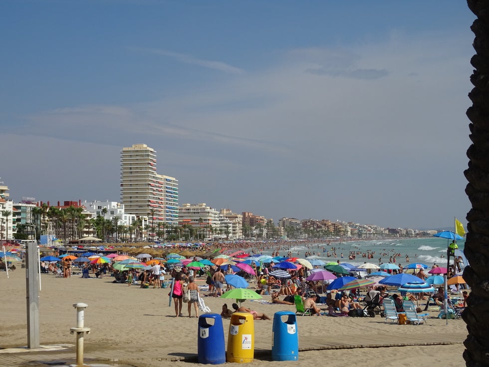 Vandaag een ritje van maar zeven en vijftig kilometer. We verlaten het erg rustige L’Aldea en rijden naar het enorm drukke Peniscola: van het ene uiterste naar het andere. Een ook nu nog vreselijk drukke badplaats. We staan op de camperplek La Brisa, dicht bij het centrum, met basisvoorzieningen, een douche en toiletten. Vanwege het hoogseizoen kost dat nu veertien euro vijftig. We beginnen met een wandeling naar het centrum. Veel hoge appartementencomplexen, een fraaie boulevard en een prachtig, overvol strand: alles staat in het teken van het toerisme. Na wat rondgedoold te hebben, komen we bij op één van de vele terrassen. Vlak daarbij is de halte van het toeristentreintje. Wat aarzelend gaan we er kijken en informeren naar de prijs: vijf euro per persoon, maar omdat we al zo oud zijn is het voor ons maar vier euro. Dat kunnen we niet laten lopen, dus we gaan mee. Het wordt een ritje langs de kust: een half uur heen en weer terug. En zien we Peniscola ook eens van de andere kant. En nu we toch in het centrum zijn, gaan we er ook maar eten. En dat kan hier bijna overal en op alle niveaus. Voor ons is het soms lastig om de menukaart te ontcijferen, wij spreken geen woord Spaans. We kiezen allebei een “veilige” optie: Wobbie een salade en Wim een kipgerecht. We hebben lekker gegeten.