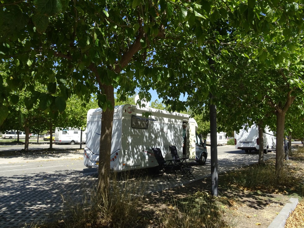 Ergens in de nacht begon het te regenen, en goed ook. In de ochtend ging dat over in gemiezer. Het was achteraf maar goed dat we niet nog een dag in Bellcaire konden blijven. We stomen verder naar het zuiden, een kleine driehonderd kilometer vandaag. Bijna helemaal over de nu tolvrije snelweg, langs Barcelona en Tarragona. Het rijdt lekker door, maar niet een landschap om van te genieten. De uitgekozen camperplaats voor vandaag zit in het dorp L’Aldea, aan het begin van de Ebro Delta. Een camperplaats die is aangelegd op een voormalig stationscomplex, en ligt nu aan een Via Verde. Mooi aangelegd, met de basisvoorzieningen en gratis. Er is plaats voor zeker twintig campers: vanavond staan er een tiental. Na de regen van vanochtend is het de rest van de dag droog, zonnig en erg warm. Tegen een uur of vijf wandelen we een keer door de hoofdstraat van L’Aldea in de hoop dat dan de meeste winkels opengaan. Maar dat valt tegen; er is een grote Chinees en een supermarkt open. Verder is alles nog gesloten, niet echt gezellig dus.