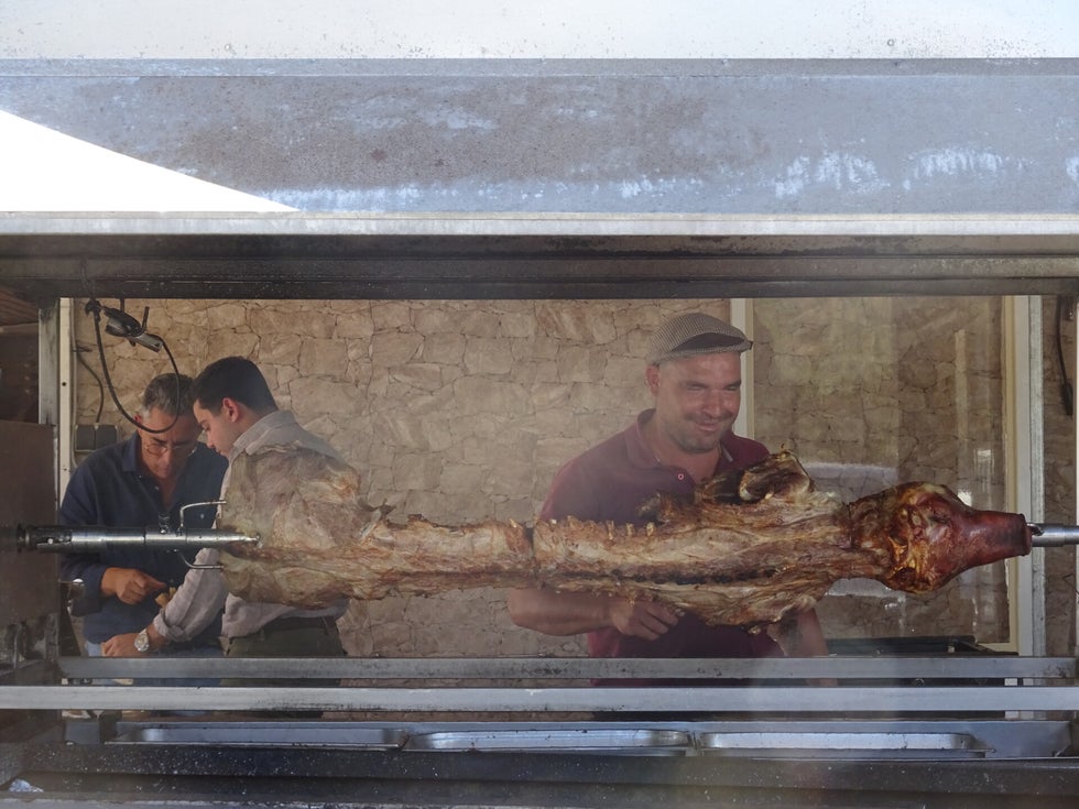 De vrijdag is voor ons altijd een bijzondere dag als we in Silves zijn. Hier in de buurt weten we een restaurant waar op de vrijdagen vlees van een varken aan het spit geserveerd wordt. We gaan er op de fiets naar toe. Over de gewone weg is het twintig kilometer, wij nemen een toeristische route. En dat viel niet mee: de wind tegen, veel hellingen omhoog en een paar keer flink de weg kwijt. Redelijk uitgeblust komen we na vijfendertig kilometer aan in het gehucht Campilhos, een eindje boven Sao Bartolomeu de Messines. Bij het Restaurant O Petisco wordt er tussen twaalf en vier uur gegeten, in twee grote eetzalen die stampvol zitten. Om half twee zijn wij aan de beurt. Helaas is dan het varken aan het spit al op. Mogelijk hadden ze vandaag een klein varkentje, of de zaak zat vol met grote eters (onbeperkt vleeseten concept). Wij krijgen een schaal met gegrilde lapjes vlees: ook lekker. Een maaltijd daar heeft een vaste prijs en bestaat uit brood en olijven, drank naar keuze (ze kijken niet op een drankje meer of minder), de hoofdmaaltijd, een nagerecht en koffie na. Het blijft een bijzondere ervaring: een Portugese maaltijd midden tussen de Portugezen. Maar na dit feest moeten we ook nog weer terug. Maar dat valt gelukkig nog enigszins mee: de wind in de rug, meer dalen dan klimmen en geen verkeerde afslagen meer. We maken nog wel een tussenstop bij een dam van een stuwmeer van de rivier Arade. Daar in een soort vallei hebben we jaren geleden al eens met de camper gestaan. Dat mag niet meer en het is nu een wat trieste kale vlakte. Om half vijf, Portugese tijd, zijn we terug bij de camper. De tellers van de fietsen staan dan op zestig kilometer. Gelukkig hebben ze op deze camperplaats goede douches.