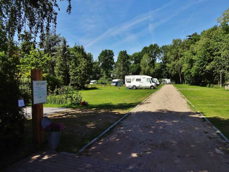 We gaan naar Emmen. Daar is een camperplaats bijna in het centrum: gratis, zonder voorzieningen. Een voorbeeld voor andere gemeenten. We beginnen met een wandeling naar de wijk Westenesch en bekijken nog een keer de boerderij waar Wobbie lang gewerkt heeft. Na het eten gaan we op de fiets naar Jan en Pieta; die hebben we tijdens de laatste Marokkoreis ontmoet. Er wordt heel wat afgekletst en we moeten blijven eten: heel toepasselijk zijn dat twee tajines. We hebben heerlijk gegeten (en gedronken). Op vrijdagmorgen gaan we eerst naar de markt in Emmen. Erg groot en door het hele prachtige centrum heen. Helaas worden we twee keer overvallen door geweldige regenbuien. Na het eten gaan we verder naar het noorden. We stoppen in Eext, op camping "De Schoapsvolte". Even voorbij de ingang zijn daar een aantal speciale plaatsen voor campers. De kale prijs is € 7,50. Douches, water en elektra moeten apart betaald worden. Wij zijn de enige camper. Tijdens een wandeling lopen we natuurlijk tegen een hunebed aan; om de paar kilometer kom je wel een bordje met een verwijzing tegen.