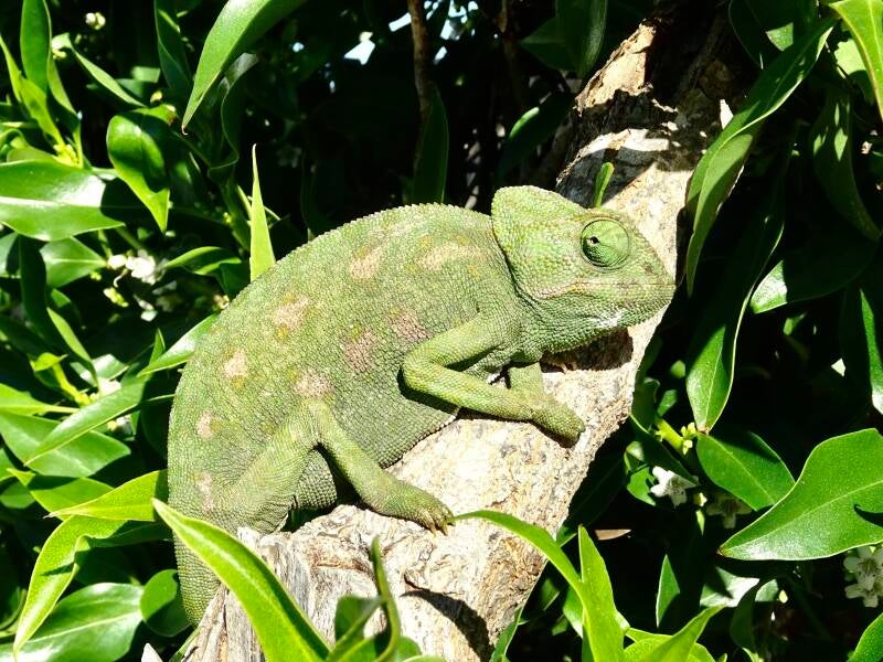 Een relatieve rustdag in Sidi Kaouki. We rommelen wat rondom de camper en de was moet gedaan worden, met de hand zoals dat heet. Die was ophangen is hier lastig. De waslijnen zijn verdwenen: improviseren dus met een lijn van een boom naar een camperspiegel. Maar op de stam van die boom zit Karel de Kameleon. Lekker in het zonnetje op te warmen en niet van plan om opzij te gaan. Dit was er dus weer één in het kader van bijzondere ontmoetingen in Marokko. Wie we ook weer tegenkomen is de man van de zonnepanelen. Tijdens elke Marokko reis komen we hem een paar keer tegen. Hij heeft twaalf jaar geleden een zonnepaneel bij ons geplaatst en dat weet hij nog steeds. De begroeting is steevast “hallo Holland, alles gut?” Plus een ferme handdruk. In de middag maken we weer een wandeling, het is er heerlijk weer voor. Een kilometer of vier langs de weg het dorp uit. Daarna richting de zee naar een rotspunt. Een ruig gebied, maar we komen er een aantal campers tegen. Kennelijk een nieuwe gedoogplek in wording.Vlakbij de rotspunt weten we een adres voor koffie. Dat heet nu Café Mazro, een beetje in the middle of nowhere. Vlak daarbij staat nu het “surfhotel”. Een enorme vrachtwagen met een twee etages hoge laadbak, ingericht als hotel voor surfers. Met een Portugees kenteken: we hebben het ding ooit eerder gezien ergens in Portugal, maar ook in Aourir (bij Agadir). De terugweg gaat via het strand, ook weer vier kilometer. Redelijk uitgeblust komen we terug bij de camper: het was net iets te veel van het goede.
