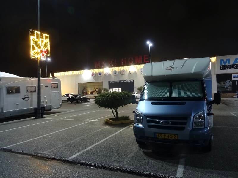 Het is weer fris bij het opstaan, het vriest twee graden. Voor we gaan rijden moeten we nog even langs het pompstation. We hebben een Spaanse gasfles die nog halfvol zit met propaangas. Maar we willen met een volle fles Marokko in: die kost nog geen vijftien euro. We hebben pech: de flessen met propaangas zijn op. Dus moeten we er onderweg eentje zien te scoren. We gaan op pad voor, naar later blijkt, een lange dag rijden. Als de temperatuur wat opgelopen is, rijden we de wolken in. Dat duurt totdat we het hoogste punt op de route van vandaag gehad hebben, ergens bij de stad Bejar. Dan breekt de zon door en loopt de temperatuur op tot boven de vijftien graden. Even voor Sevilla kunnen we een volle fles propaan op de kop tikken. Net op tijd, want even later begint het te regenen en voorbij Sevilla worden dat hoosbuien. Zo hevig dat onze telefoons beginnen te kraaien: we schrikken ons een hoedje. Het zijn twee Spaanse alarmberichten die een code-rood signaal afgeven vanwege overstromingsgevaar. Uiteindelijk zijn we tegen zeven uur in het shoppingcentrum van Palmones, vlakbij de haven van Algeciras. Ook daar regent het en het blijft er ook vannacht regenen. Morgen wordt een relatieve rustdag. Wat later opstaan en er moeten tickets gekocht worden voor de overtocht. En natuurlijk allerlei zaken die een verblijf in Marokko aangenaam maken, zoals wijn en bier.