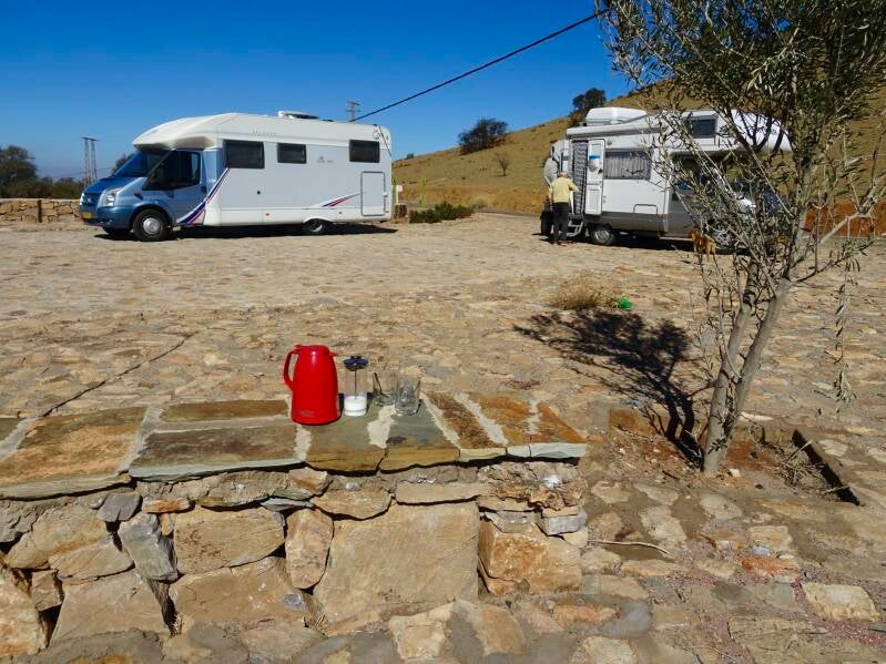 Tijd voor koffie op de parkeerplaats van Ighir Ifran.