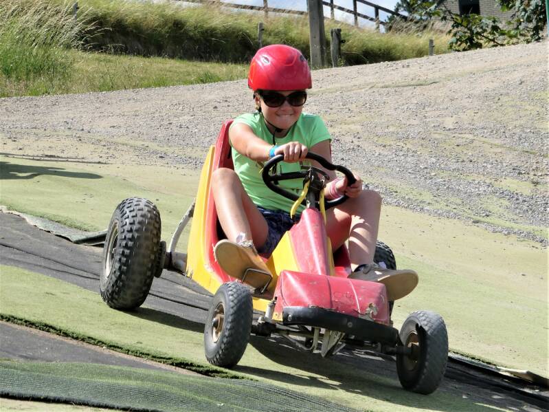 Op maandag 17 augustus is onze kleindochter Tessel jarig. In de vakantie op Camping Les Salins in Stoumont. We besluiten er op vrijdag 14 augustus heen te gaan als verrassing: ze weet van niets. De heenreis verloopt niet helemaal voorspoedig. Bij Luik ontdekken we dat we nodig moeten tanken. Maar voordat we bij een tankstation zijn is het al te laat. Ergens langs de snelweg kunnen we niet verder. Dus gaat Wim op de fiets op zoek naar diesel. Maar dat vindt de Belgische politie geen goed idee. Bij hoge uitzondering mag hij wel lopen naast de fiets. Uiteindelijk is na anderhalf uur het probleem opgelost. Een ervaring rijker en een goede les om beter op te letten. Halverwege de vrijdagmiddag komen we aan op de camping; langgerekt in een vallei met een riviertje. En heel veel vaste staanplaatsen. De verassing bij de kleinkinderen is groot, we worden erg enthousiast gegroet. Op zaterdag gaan we fietsen, we vertrekken vol goede moed. Maar na een half uur begint het te regenen. Steeds harder, twee uur lang en we kunnen nergens schuilen. Als verzopen katten komen we uiteindelijk terug op de camping. Dat het voorlopig de laatste regenbui is, is op dat moment een schrale troost. Op maandag, de verjaardag van onze kleidochter, gaan we naar een skihelling in de buurt van Trois Ponds. Deze periode ingericht als een park met allerlei doe-activiteiten. Van karten tot doolhof en boerengolf tot het afdalen op luchtbanden. Voor de kinderen een leuke afsluiting van de vakantie.